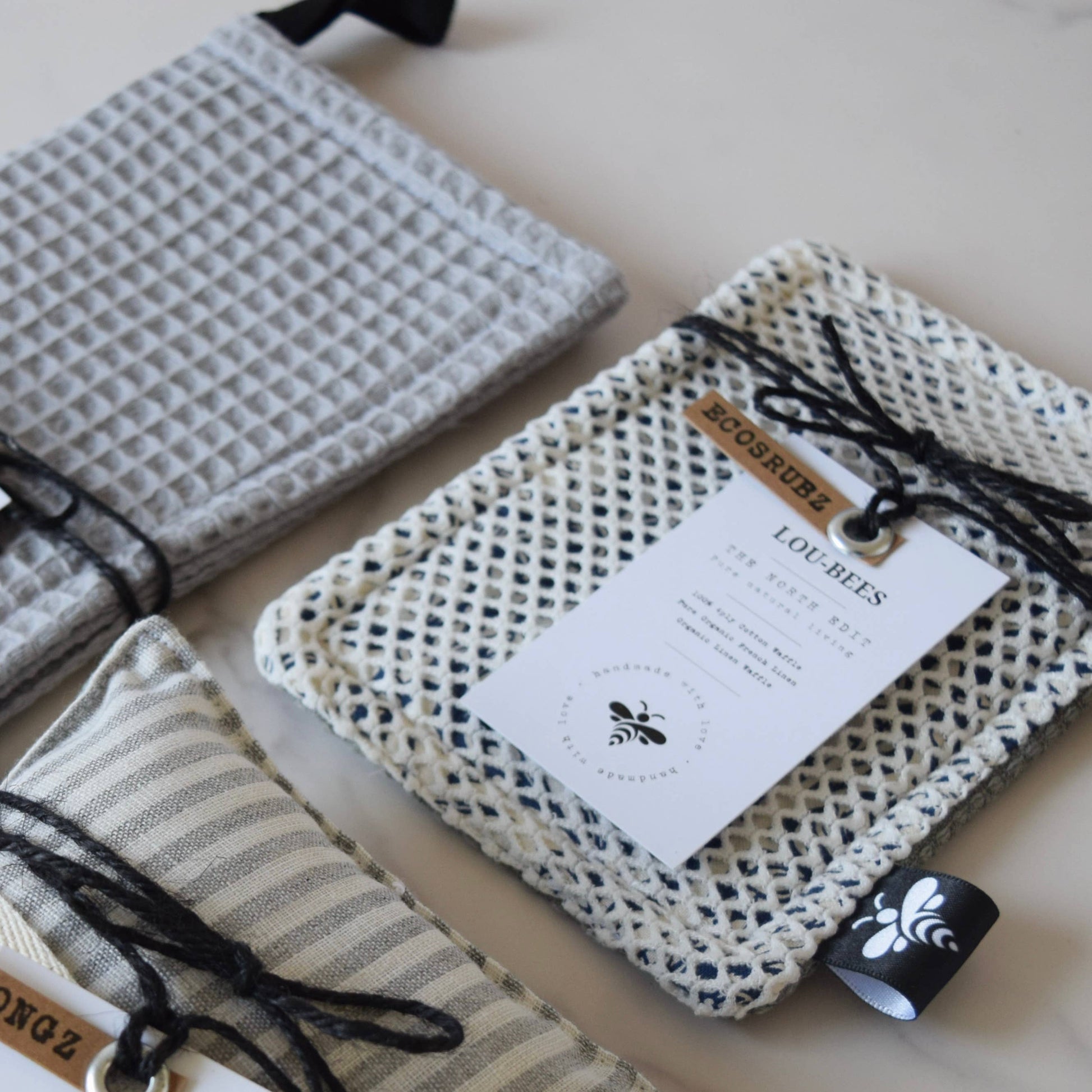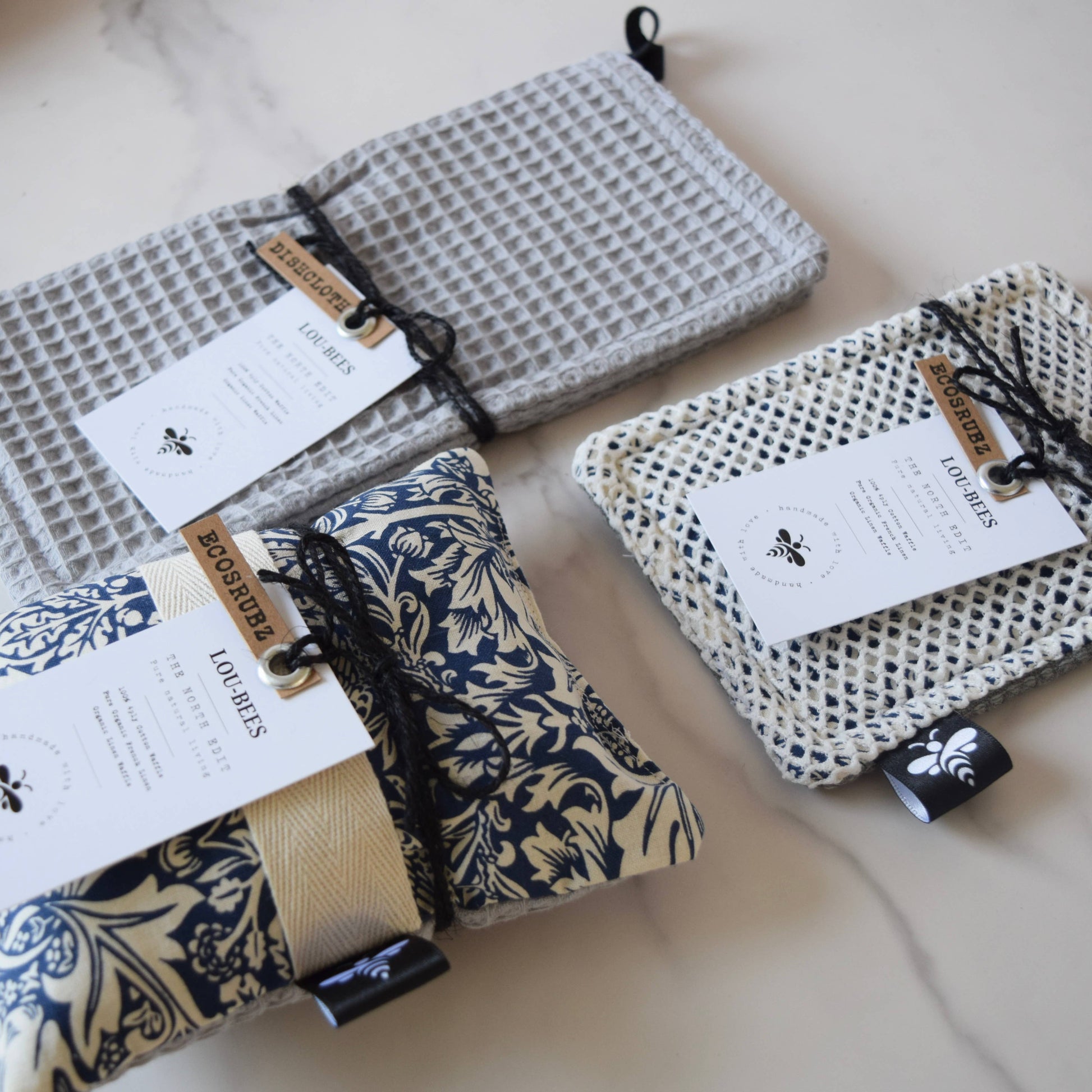 3. EcoScrubz – organic linen waffle and cotton mesh scrubber with a William Morris cotton underlay for style and gentle scrubbing power.