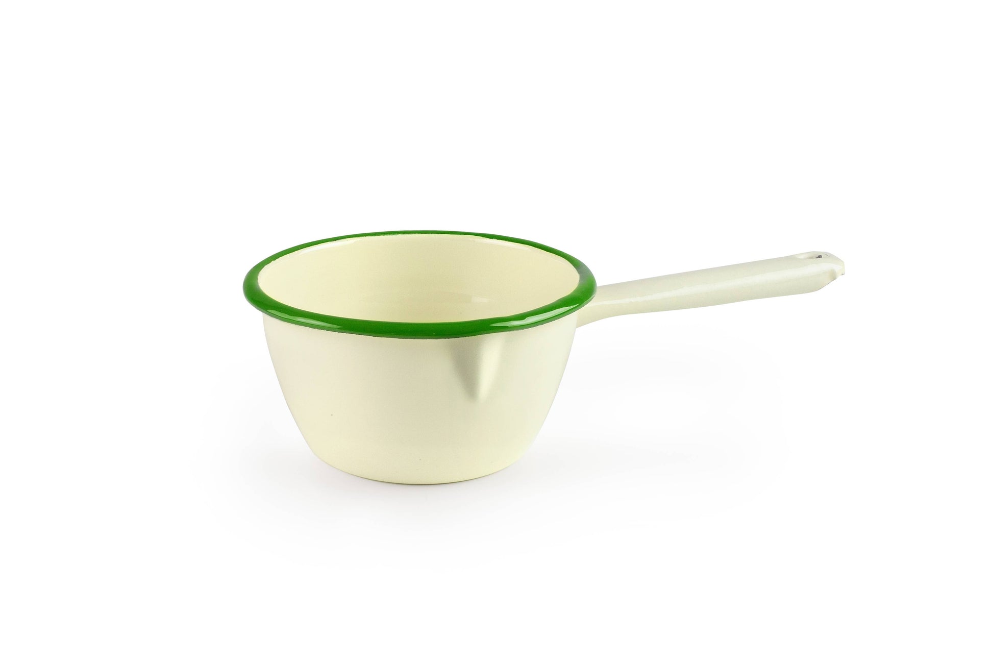 This classic enamel milk pan is perfect for everyday cooking, offering both style and function. Designed with a smooth, non-reactive surface, it ensures your milk heats evenly without burning or sticking.