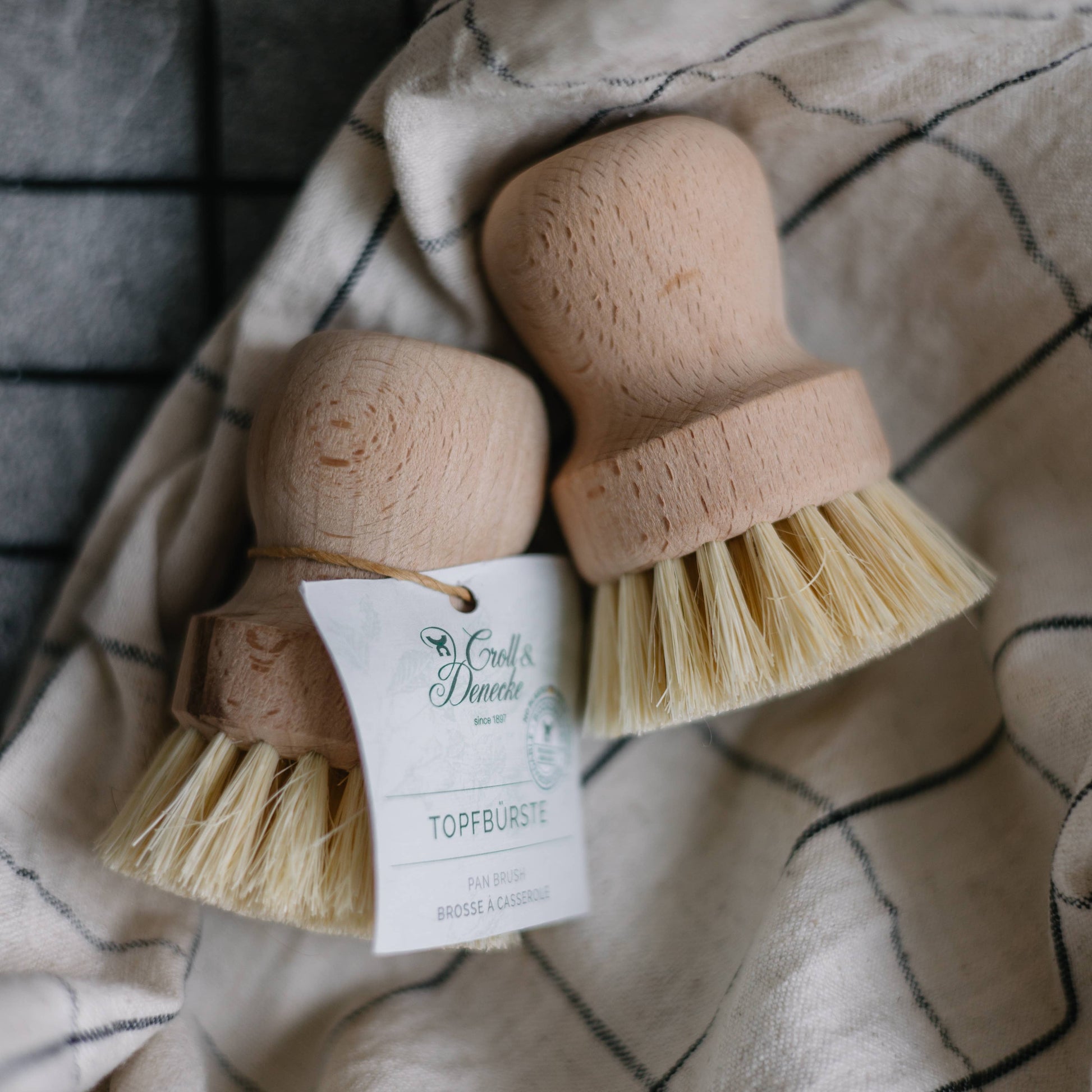 This practical kitchen helper is made of beech wood and is equipped with sisal bristles. Completely plastic-free and vegan, produced in Germany. Ideal for lathering dish soap or for general cleaning in the kitchen.